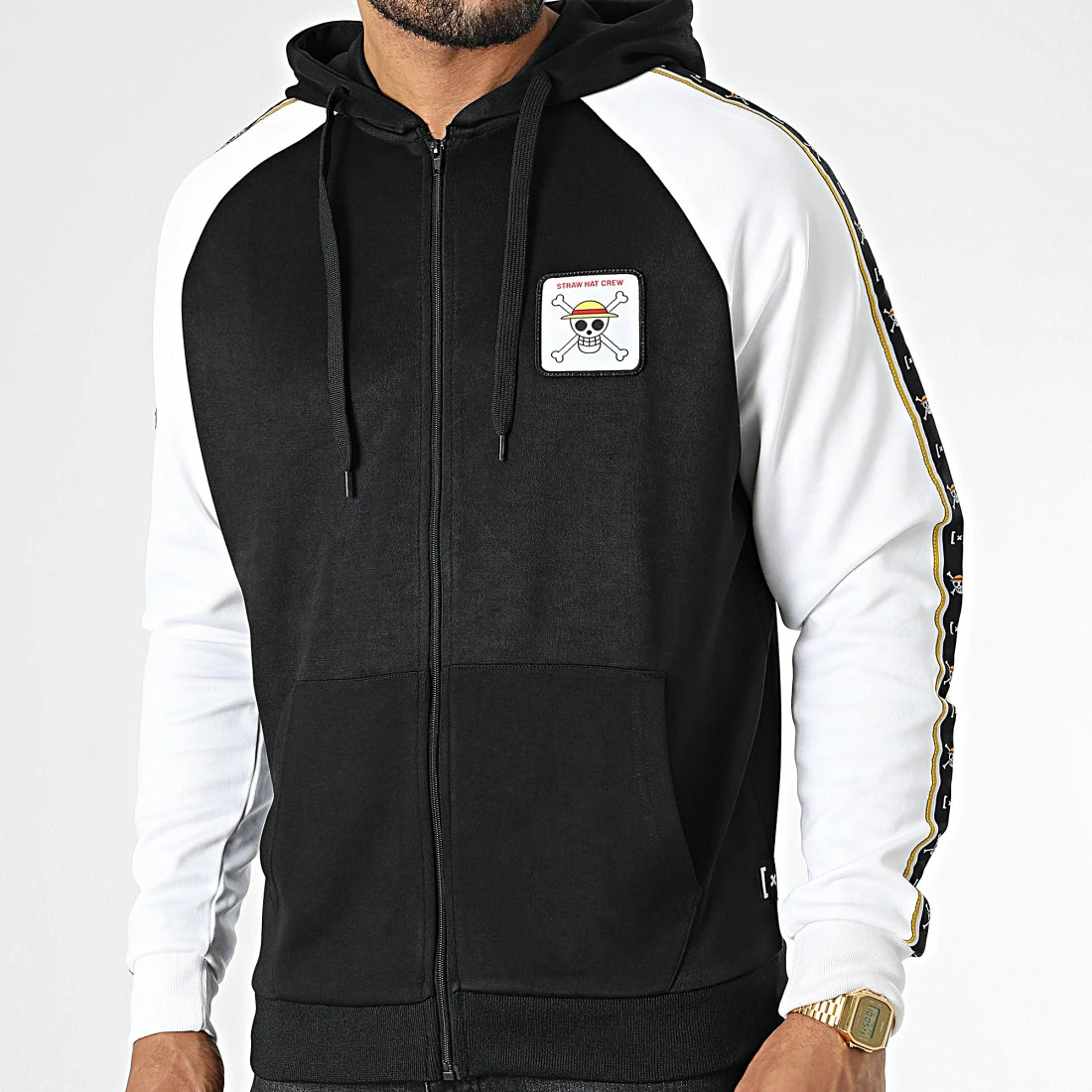 • Sweat zippé capuche tendance avec patch One Piece brodé