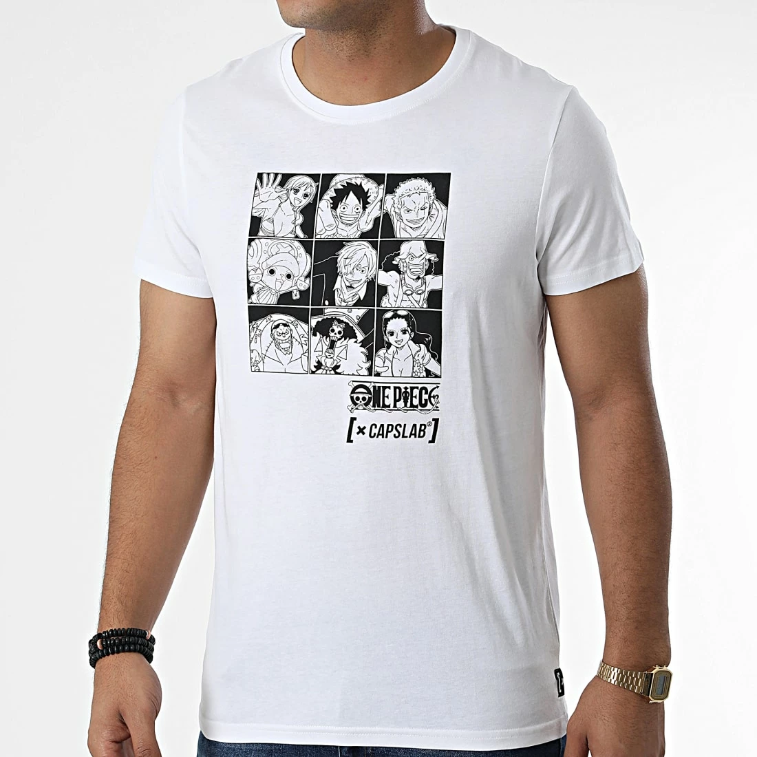 • Tee shirt en coton imprimé visuel One Piece à l’avant et au dos